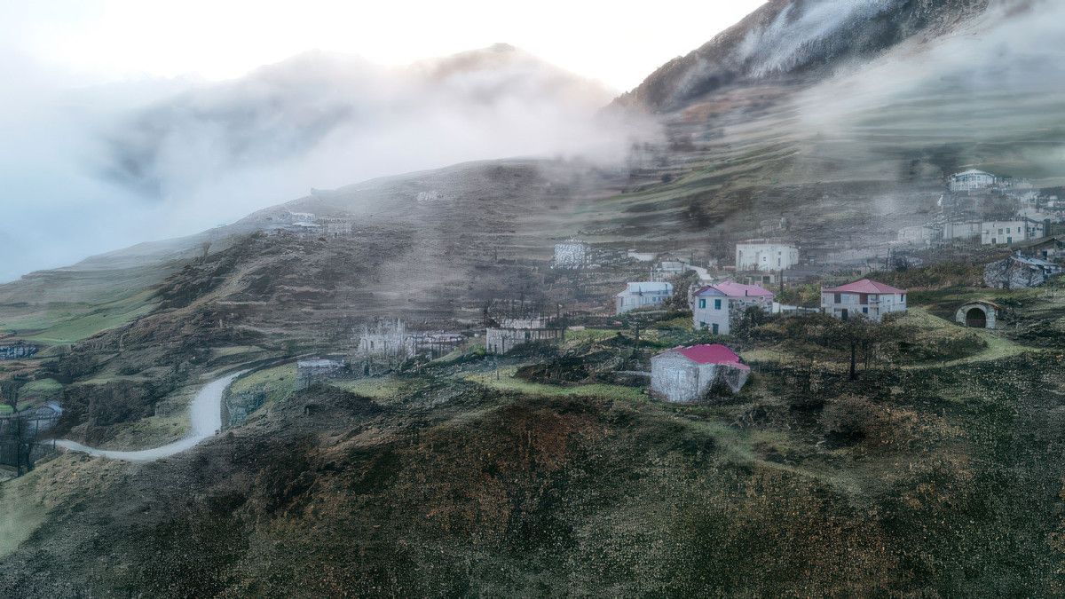 Tek katlı yapılar ve kiliselerden oluşan Santa Harabeleri sonbahara, tabiatının sis ve bulutları arasında renk cümbüşüyle veda ediyor.